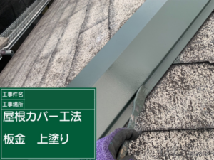 熊本市中央区にて棟板金の塗装・屋根カバー工法