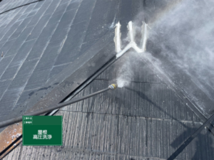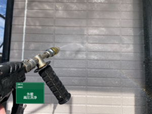 洗浄にて汚れや旧塗膜を洗い流していきます。