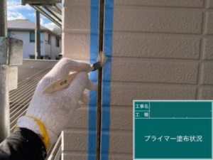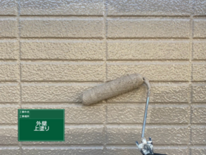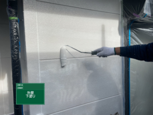 下塗りで塗料の吸い込みを抑えておき、密着性を高めます。