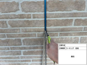 まずは劣化した目地を撤去し、打ち替えていきます。