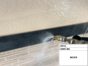 全体を高圧洗浄機で洗い流し、下準備を整えます。