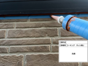 コーキングは仕上がりの外壁色にあわせたカラーを使用しています。