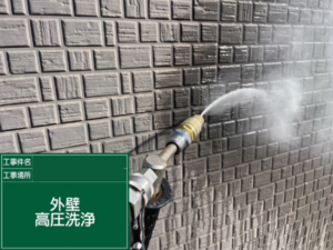 まずは高圧洗浄にて外壁の汚れと旧塗膜を洗い流します。